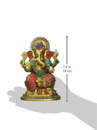 Size : 7 Inches Height X 5 Inches wide X 4 Inches depth. Weight : 2.1 kg. Material : Brass , With Turquoise and other coral stone Handwork.