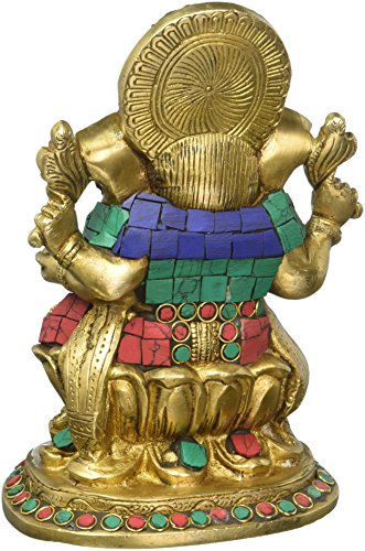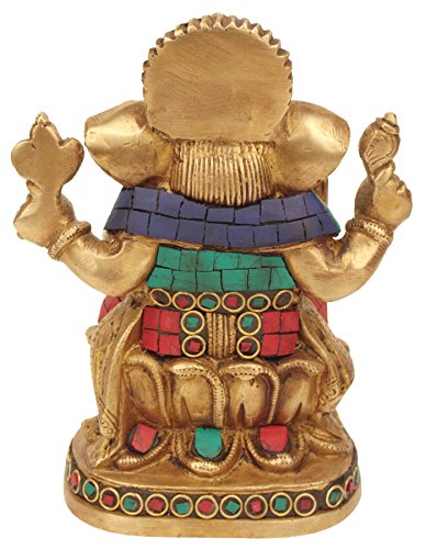 CraftVatika Indian God Ganesha Idol Large - Handmade Brass Hindu Religious Sculpture - 7.0" x 5.0" x 4.0"