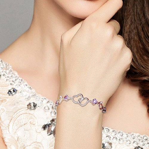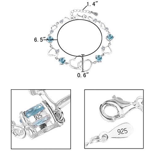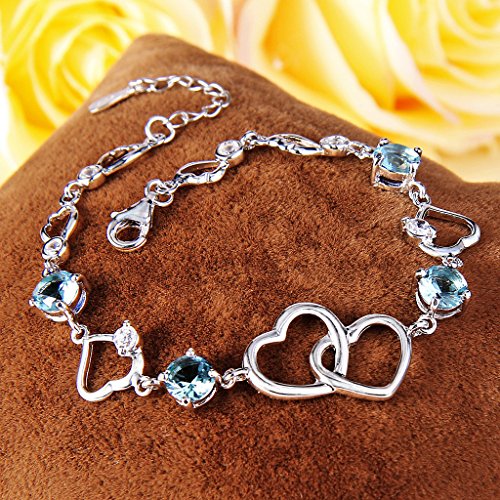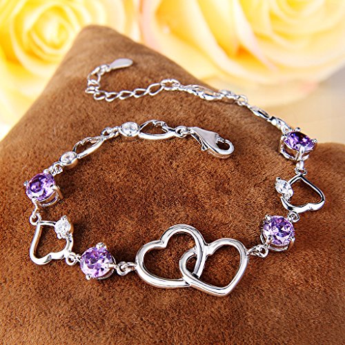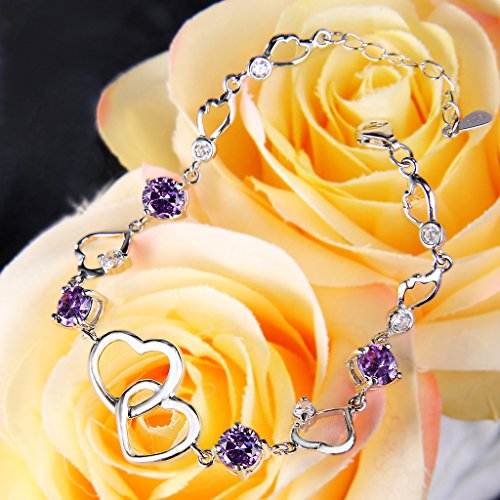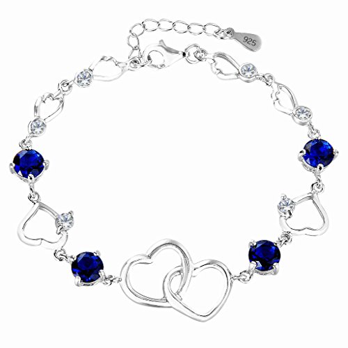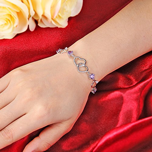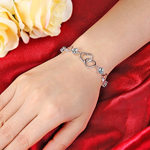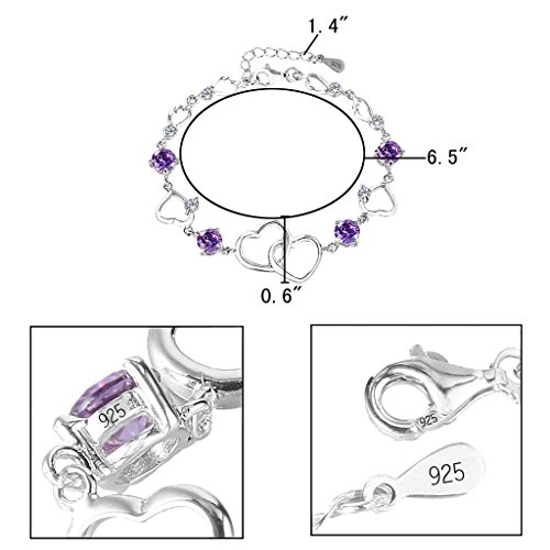 -. Title : EleQueen 925 Sterling Silver Round CZ Double Love Heart Link Bracelet Rhodium Plated, 6.5"+1.4" Extender