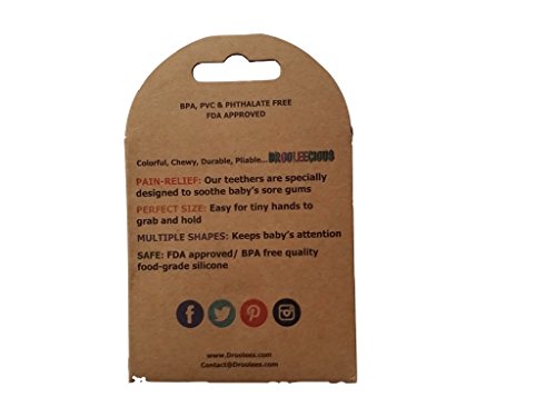 -. Title : Droolees High Quality Baby Teether Toys, FDA Approved, BPA, Latex, PVC, Phthalate Free, Soft & Chewy, 4 Fruit Teether Shapes, Soothes Baby & Toddlers Sore Gums