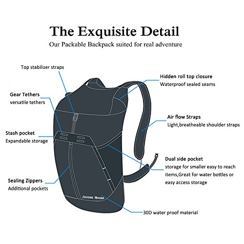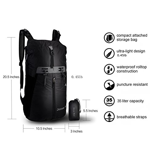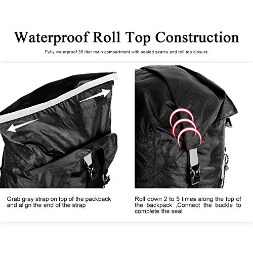 -. Feature : Waterproof yet Durable: Uses the finest materials available in the outdoor industry, Fully waterproof 35 liter main compartment with sealed seams and roll top closure / Ultra Light Design : Our backpack only 0.46Lb, away to fit in the palm of your hand and unpacks into a 35Liter backpack with a waterproof main compartment / Multi-Purpose:The day pack features two water resistant zipper compartments, 2 stash pocket and 2 side pockets and compact attached storage bag, this backpack is unisex and suitable for man, woman / High Capacity: Interior 35-liter capacity! Large enough to carry what you need, Perfect for travel, Multi day trips, hikes, camping, fishing, outdoor etc / What You Get: 35L packable backpack with exquisite packaging, our worry-free 180day warranty and friendly customer service