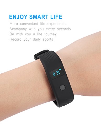 -. Feature : 1.No need work with mobile phone, no bluetooth, easy to work. / 2.Touch button to switch each menu, 0.49" OLED display / 3.Long time stand by,waterproof IP67, Medical grade silicone belt / 4.Sports tracking, steps, calorie, distance, sleep monitor and time&date display / 5.Personal settings:Press and hold the button to enter the setting mode.You can set information like year-month,day-hour,minute-gender-age-weight-height