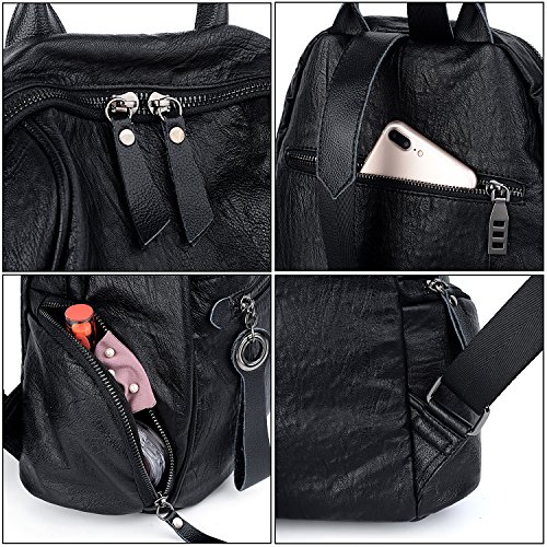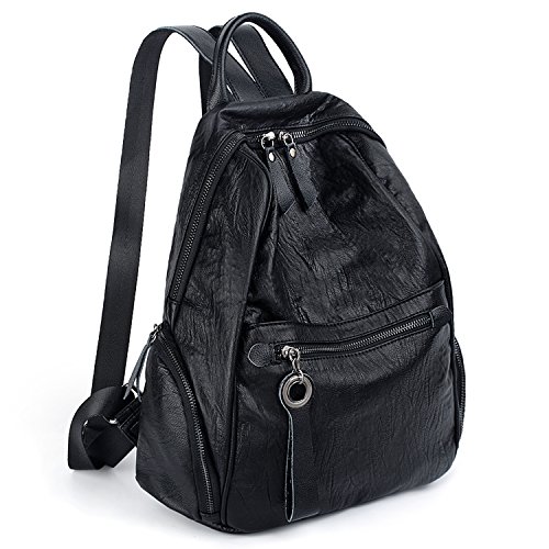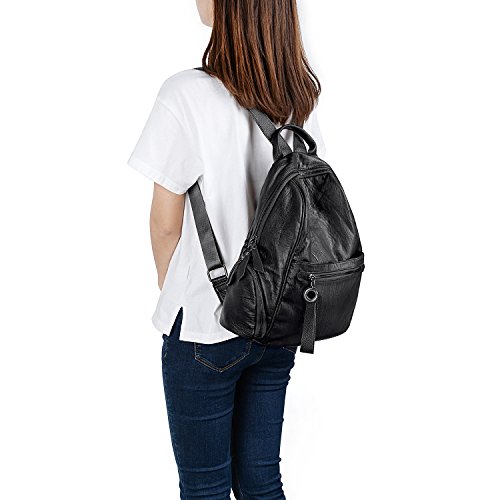 UTO Women Backpack Purse PU Washed Leather Zipper Pockets Ladies Daily Rucksack Shoulder Bag