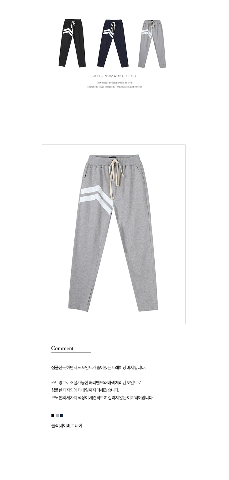 ▣상품설명 : 유니크한 배색 라인이 포인트가 되주는 트레이닝 하의를 소개합니다. 차분한 컬러구성과 편안한 핏라인 디자인이 더욱 슬림해보이고 세련된 스타일의 데일리 이지웨어랍니다. 부드러운 면소재와 허리 밴딩처리가 실용적이며 활동이 편안한 트레이닝 웨어입니다.