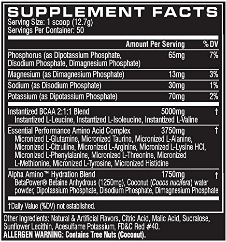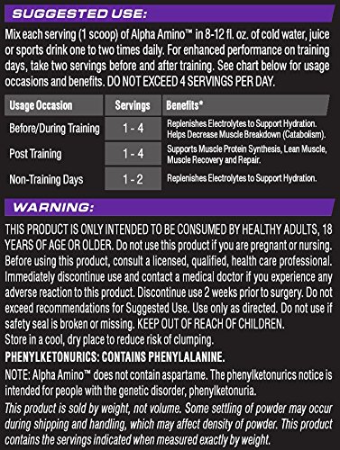 ReleaseDate : 2016-11-09 Studio : Cellucor Publisher : Cellucor Binding : Health and Beauty Product Description Fortified by a well-studied 2:1:1 BCAA ratio for optimal performance, in addition to 11 essential amino acids, this Alpha Amino formula easily joins your stack.