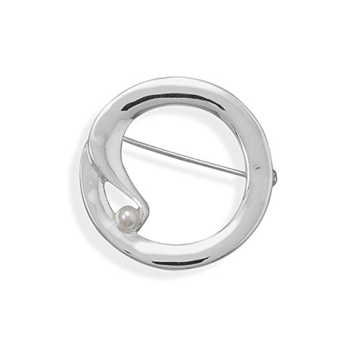 -. Title : Silver Plated Open Circle with Simulated Pearl Fashion Pin
