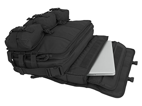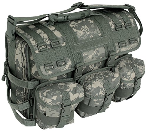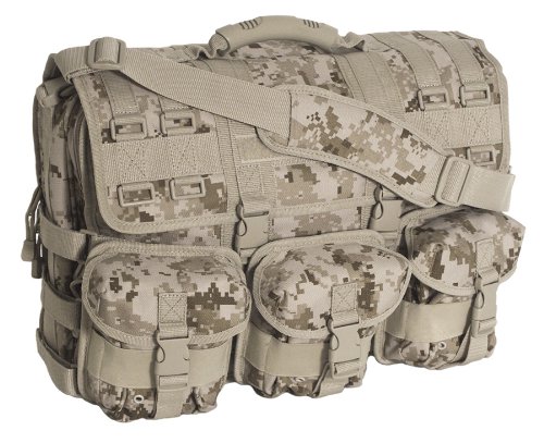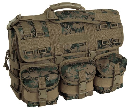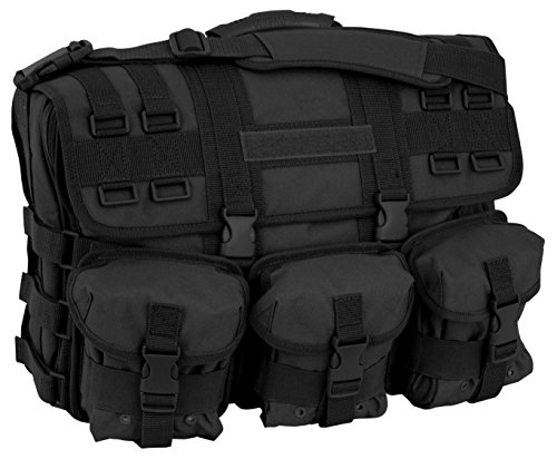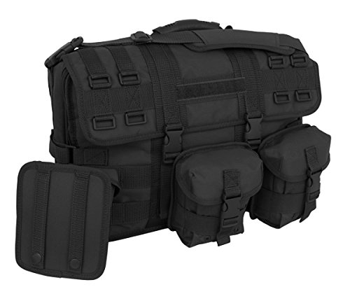 Designed for extreme use in adverse conditions, this briefcase is built from the most durable materials available. Constructed of 600D poly materials with a double-coated PVC lining for strength and durability, it features a large, expandable main compartment, multiple gear and organization pockets and webbing MOLLE loops in multiple locations. The bag's front panels host three handy detachable MOLLE pouches. Removable, adjustable padded shoulder straps and a padded laptop computer sleeve accommodating most 17" laptops are included. The front flap features a Hook & Loop strip for Pride Patches or Velcro Name Tapes. This is the ultimate briefcase -- use it for everyday business on or off base. Use it as the ideal travel carry-on. Or use it at the range ' it's the most versatile bag you'll ever own! Laptop sleeve accepts laptops with maximum of 19' diagonal length. Dimensions: 18"L x 14"H x 4½"D (expandable to 6" D). Bag weighs 4 lbs.Feature