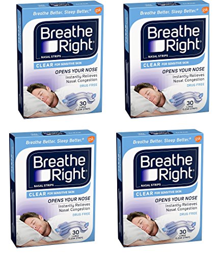 (breathe right)/Health Care/Medications Treatments/DIRECT FROM USA/Breathe Right pLgmGJ Nasal Strips, Large, Clear, 30 Count Boxes (Pack of 4)