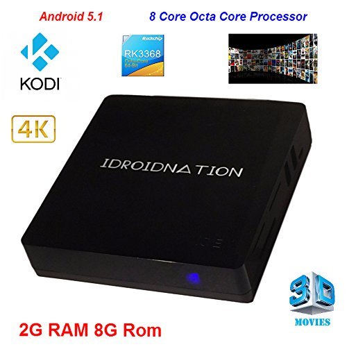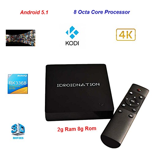 Ready for the highest rated and Best Android TV Box available! The I-Box is Here, the world's first and fastest Octa Core TV box. With 2GB RAM and 8GB Internal storage, the I-Box fully loaded kodi box is changing the Android TV market. Using Android 5.1 Operating System, unlike competitors using the old Android 4.4, the I-Box smart box has the newest technology available and is fully loaded plug and play, making a easy transition cutting the cable bill. Begin watching unlimited movies, tv, sports all on demand with no monthly subscription. Features include the kodi 15 (xbmc), netflix, YouTube, the Play Store, you can download virtually any app or game. Over the Air Updates, periodic firmware releases, as well as lifetime free programming, will keep your I-Box running in top condition. This android tv box uses an RK3368 Octa Core Processor, buffering is no longer an issue and can handle even the most complex android gaming others can't. Handles up to 4k with 3d as well as 1080P no problem. Be Cautious of competitors with the outdated Dual Core and Quad Core Processors which have a lag, studder, and buffer. The I-Box comes with our standard remote, and heavy user's which we guarantee you will be are recommended to get our air mouse or to use a USB keyboard and mouse, it is all personal preference. All of this in one Android TV Box Fully Loaded, and includes a one year warranty.Feature