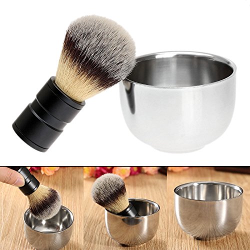 Dophee 2세트 맨즈 쉐이빙 용 쉐이빙 브러시 +스테인레스강의 볼 이용 세안 면도
