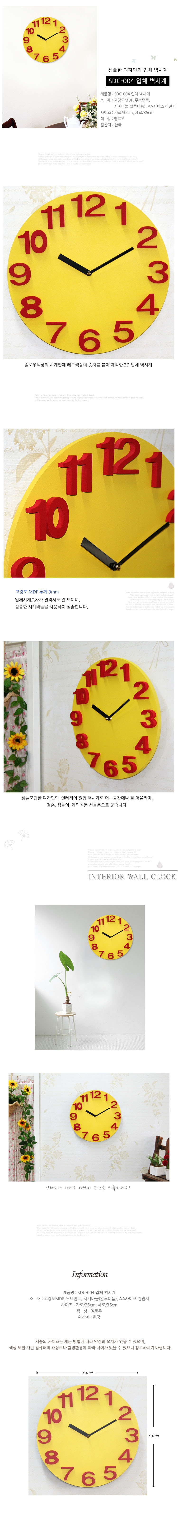 INFO Material : high-solidity MDF, Movement Size : 35cm x 35cm x 0.9cm Contents : Clock, AA Battery 1ea Origin : Korea