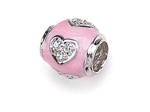 -. Title : Zable Pink Enamel CZ Heart Compatible Bead / Charm