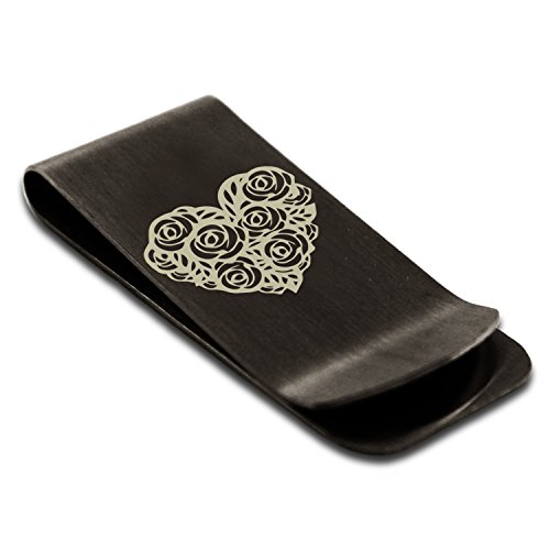 (Tioneer)/Accessories/Wallets, Money Key Organizers/DIRECT FROM USA/Stainless Steel Rose Petal Heart Engraved Money Clip Credit Card Holder