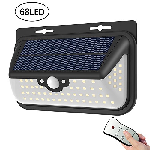68 LED Solar Lights, Wireless Waterproof Outdoor Solar Powered Motion Sensor Security Light With Remote Control 3 Modes Lighing for Garage, Patio, Garden, Yard, Step Stair, Fence, Deck