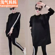 韩版休闲孕妇运动套装 时尚条纹孕妇卫衣 秋冬款 孕妇托腹小脚裤