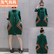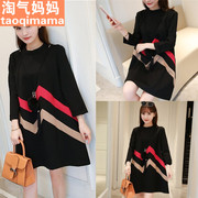 孕妇装 秋冬款 韩版胖妹妹卫衣裙 时尚撞色条纹孕妇连衣裙 打底衫