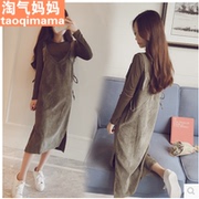 孕妇装秋冬款 韩版V领灯芯绒孕妇背带裙 百搭打底衫潮孕妇两件套