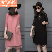 孕妇秋冬装 欧美大气孕妇两件套 蕾丝打底裙毛呢孕妇背心裙连衣裙