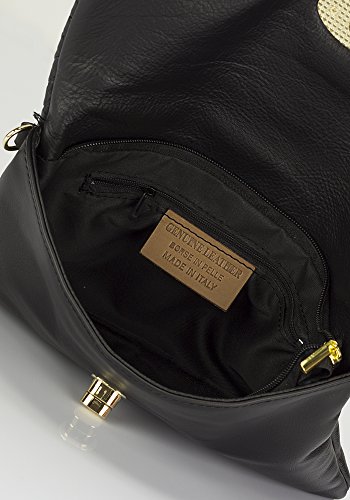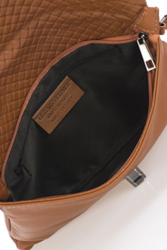 -. Brand : Laura Moretti -. Department : womens -. Feature : Practical, comfortable and timeless leather bag for any occasion. / Includes shoulder strap. / Materials of high quality and durability. / Feminine style bags for any occasion, great style, shape and design. / The final touch for the perfect outfit. -. ProductGroup : Shoes -. ProductTypeName : HANDBAG -. Size : One Size -. Title : Laura Moretti - Smooth leather and woven leather handbag, FLAP style