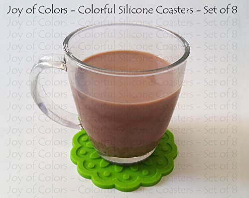 Joy of Colors - Colorful Silicone Coasters, Flower Shaped, Set of 8, Ideal for Hot for Cold Drinks, for Indoors or Outdoors, Graet Gift for Holiday or Any Other Occasion