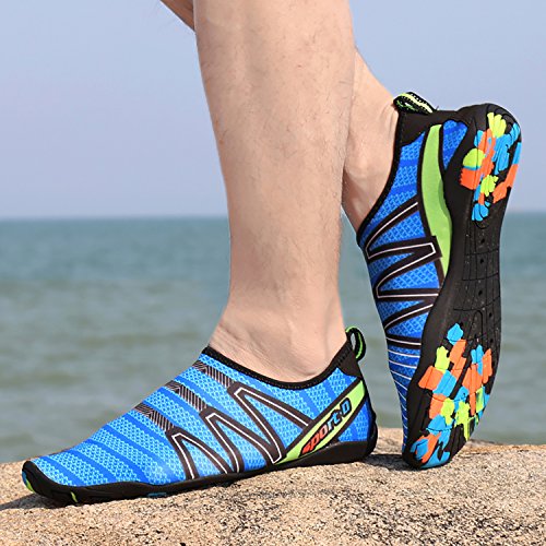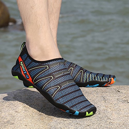 Product Features: Stretchy Upper: Super stretchy material offers incredible breathability and quick-dry property, and wraps your feet tightly without uncomfortable feeling of pressure. Convenient: Ultra-Lightweight and compressible, handy to carry. Slip-on style convenient to take on and off. Perfect Multifunctional Shoes: Fit for surfing, beach volleyball, Yoga, river trekking, sailing, swimming, boating, kayaking, windsurfing, cycling, jogging, walking, weight training, fishing, car-washing and other sports activities.