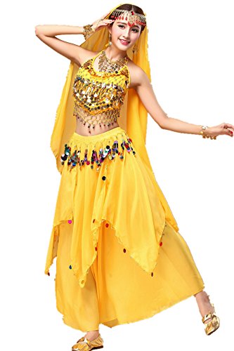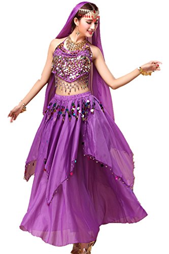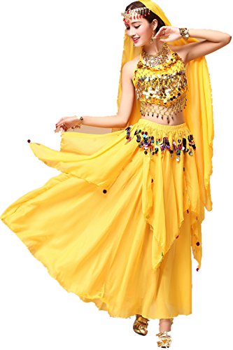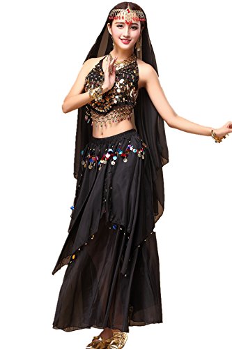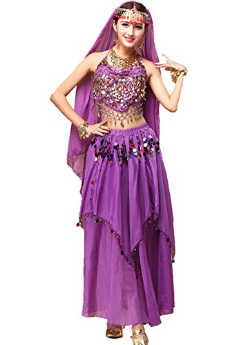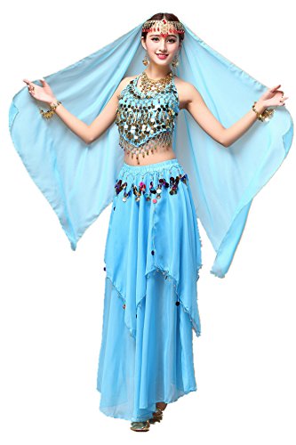 -. Brand : YYCRAFT -. Department : Womens -. Feature : Tops: Ties in the back and neck, could be adjusted to fit US 30A,30B,30C,32A,32B,32C,34A,34B,34C,36A,36B. / Skirt: Length: 35.4"; The skirt waist is elastic, could be stretched to fit size US 4,6,8,10,12. / The coins stitched on the top and skirt, it's stunning when doing any movements on the stage. / A costume set perfect for dance shows, halloween party, dressing up party,performance,etc. / Package includes: 1 Top + 1 Skirt + 1 Head Veil + Head Chain.( The other accessories are not included.) -. ProductGroup : Apparel -. ProductTypeName : ADULT_COSTUME -. Title : YYCRAFT Women Halloween Halter Top Skirt Costume Set Belly Dance Outfit 8 Colors