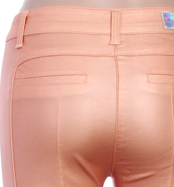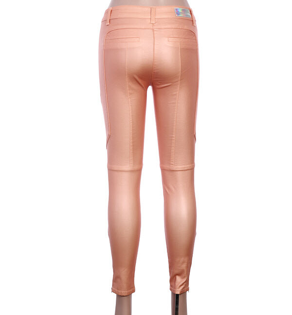 SISLEY, 은은한 광택이 느껴지는 소재에 절개디테일로 포인트를 주어 세련된 분위기의 스키니팬츠입니다