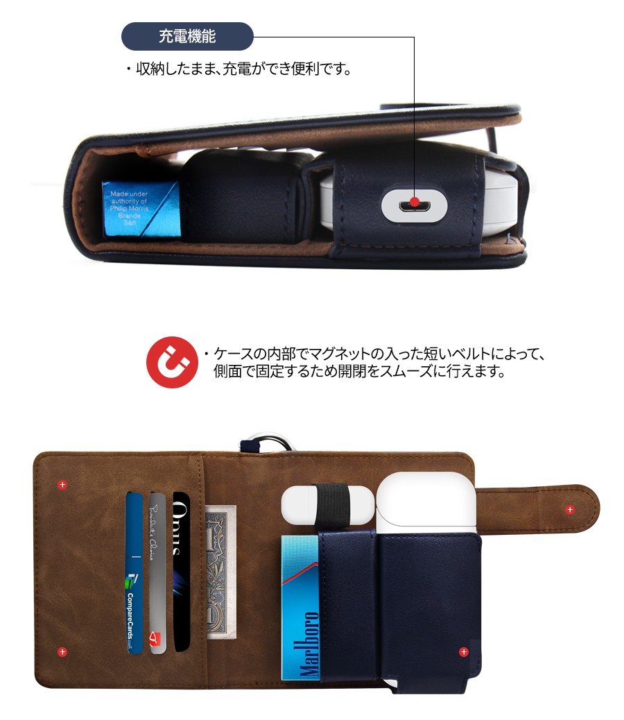 | 商品説明 | iQOSポケットチャージャー、クリーナー、ブラシ、ヒートスティックは もちろん、カードや紙幣もきれいに収納できます。 |