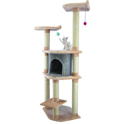 (Armarkat)/Pet Supplies/Houses Habitats/DIRECT FROM USA/Armarkat 64-Inch Kitten Wooden s tep Cat Tower Tree House Condo Scratcher in Blanched Almond W/ ...