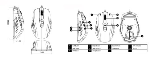 - Feature : Elegant 3D Painting with full size design 4.84x3.07x1.61 Inch (123x78x41mm) / Gold-plated USB Connector - 5.9ft (1.8m) Braided Fiber Cable / On-the-fly 4 Level Adjustable DPI Switch 500-8200 / Onboard Memory with 8 Programmable Buttons and 5 User Profile / High speed motion detection - up to 150ips and 30G - Frame rate 12000fps