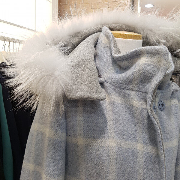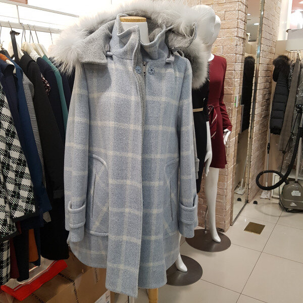 a라인으로 편하게 입으실수 있는 아이이며 후드는 탈부착이가능한 아이입니다 퍼는 너구리 퍼로 되어있구요파스텔에 체크라 어떤 옷에도 잘어울린담니다총장길이88센티에 가슴둘레 단면50입니다