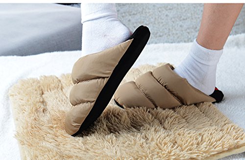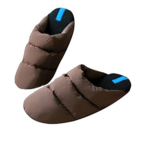 | Mens Womens Winter Soft Cozy Thermal Quilted Down Slippers Waterproof Warm Fleece Lined Mules H... |