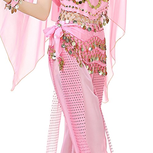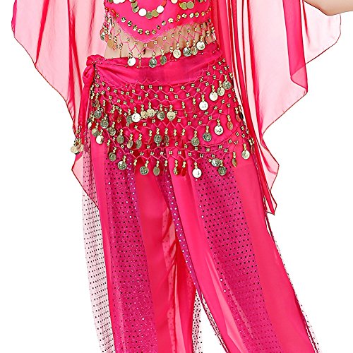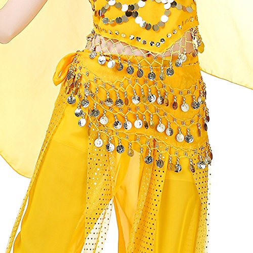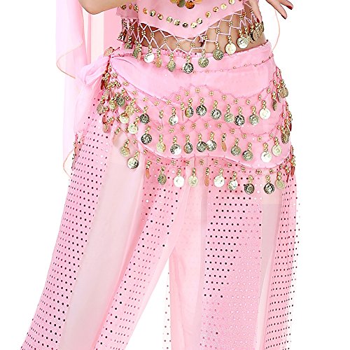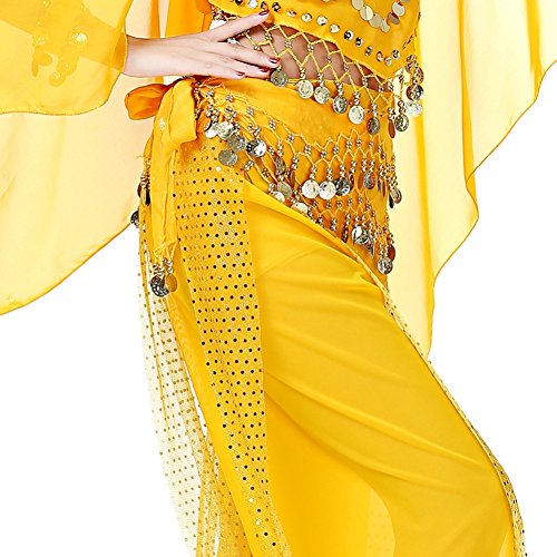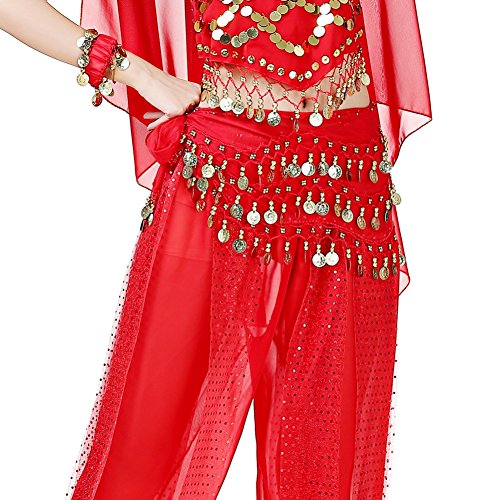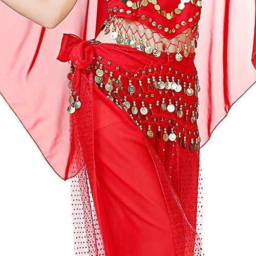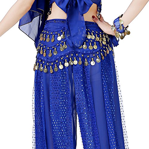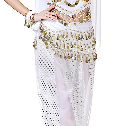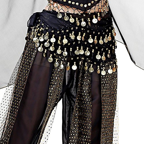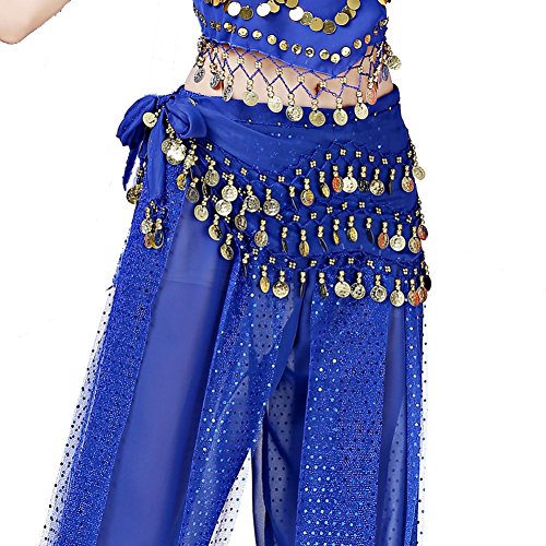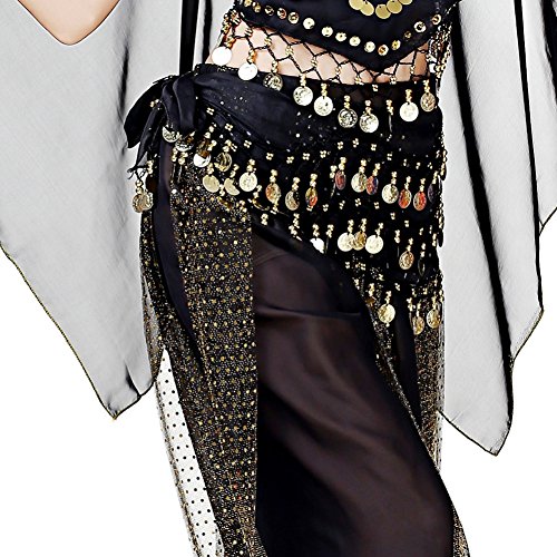 (Loveble)/Accessories/Cold Weather Accessories/DIRECT FROM USA/Loveble 3 Layers Chiffon Belly Dance Wrap Hip Scarf Belt Waist Chain One Size with 128 Coins