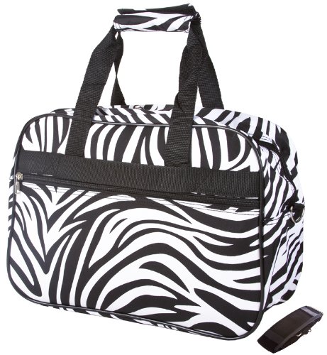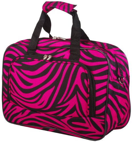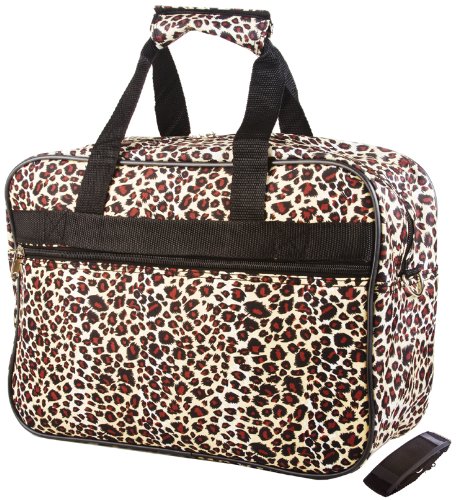 -. Binding : Apparel -. Brand : World Traveler -. Department : womens -. Feature : 15" wide x 11" tall x 6.0" deep / Material: Microfiber / Detachable, Adjustable Shoulder Strap Included / Zipper main enclosure with 2 exterior zipper pockets / Two carry handles come together with pattern matching velcro grip -. NumberOfItems : 1 -. ProductGroup : Apparel -. ProductTypeName : BAG -. Size : Medium -. Title : World Traveler Animal P.R.Int Collection Overnight Travel Bag 15-inch