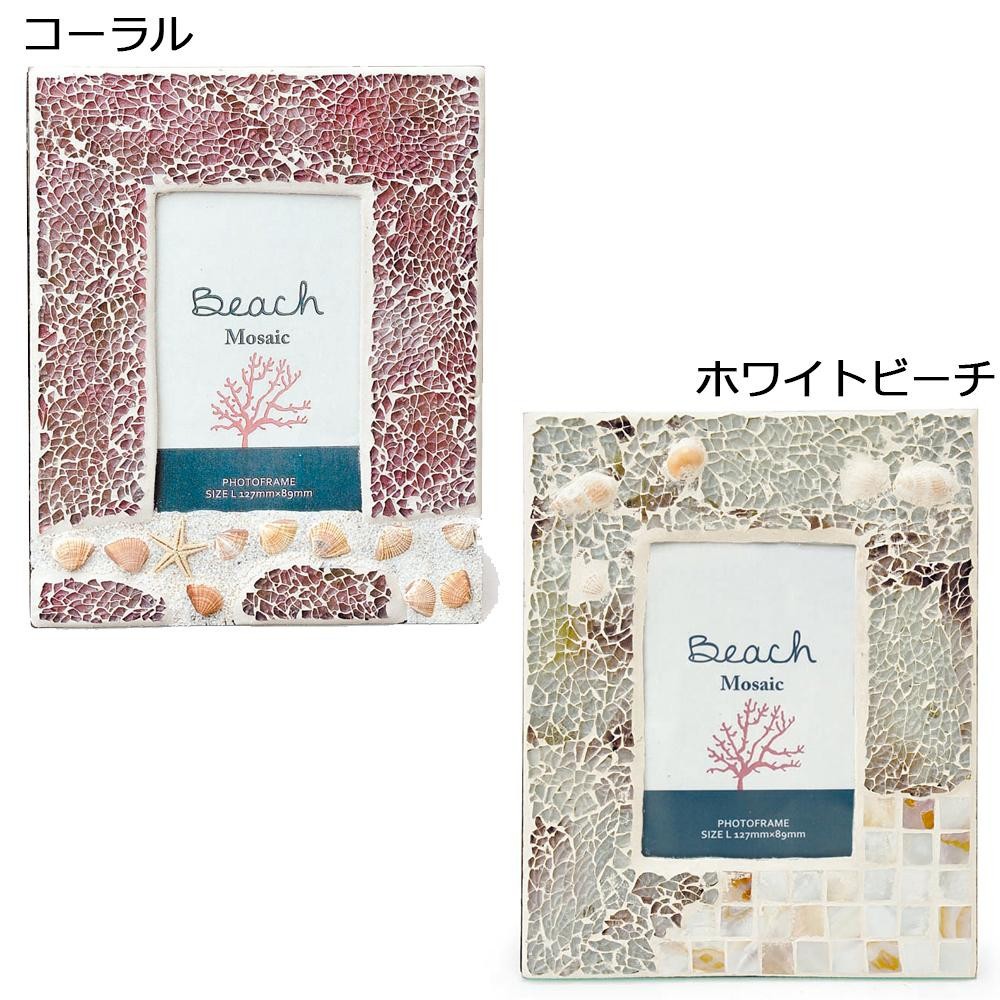 ガラスとシェルでできた可愛いフォトフレームです。 製造国:中国 素材・材質:ガラス、石膏、シェル 商品サイズ:約W16.8×H21cm 仕様:L判サイズ対応卓上用 ※サプライヤー直送品 ご注文後5~6営業日後の出荷となります【商品名】キーストーン ビーチモザイク フォトフレーム コーラル・BEMOPHCO
