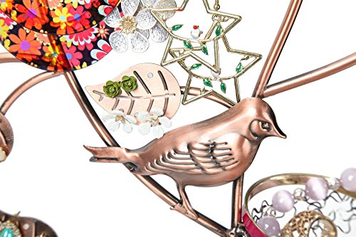 Organize Capacity: Crafted leaves hold up to 48 pairs earrings as well as the 16 branches organize necklaces and bracelets. Cardinal nest is a holder for rings or small items.