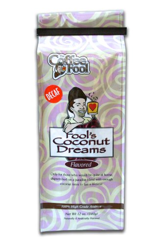 THE COFFEE FOOL STRONG DRIP GRIND, FOOL'S DECAF COCONUT DREAMS, 12 OUNCE