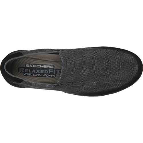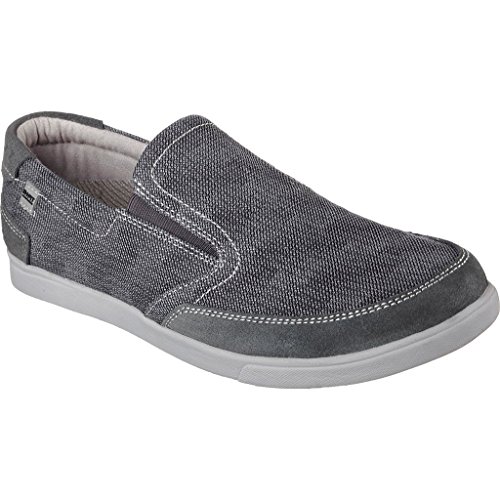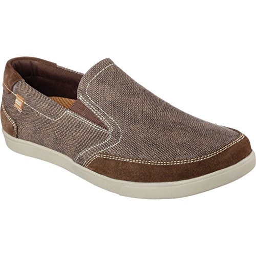 Binding : Apparel Product Description Keep your seasonal design simple and comfortable with the SKECHERS Relaxed Fit®: Cardova - Porten shoe. Soft woven mesh fabric and suede upper in a slip on casual comfort sneaker moc with stitching and overlay accents. Memory Foam insole. Suede wraparound mudguard overlay; Suede heel panel detail Dual side elastic fabric panels for easy slip on fit; Embossed side S logo; Stitched seam accents on sides and front Lightly padded collar; Soft fabric shoe lining Relaxed Fit® design for a roomy comfortable fit Memory Foam arch-length cushioned comfort insole Shock absorbing midsole; Vulcanized-look midsole with textured toe bumper Flexible rubber deck-design traction outsole. 0