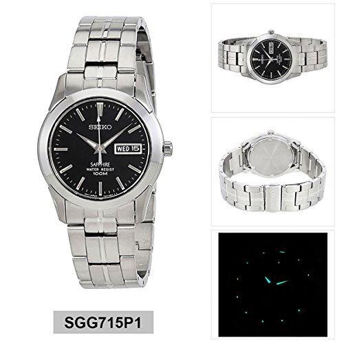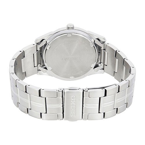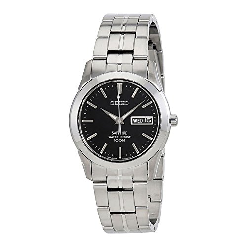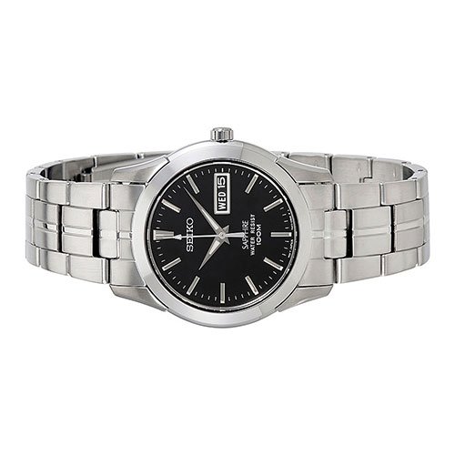 If youre a man with even the slightest fashion sense then you know that typically there is a time and place for every accessory That makes it all the more rewarding when you find one that can be worn across multiple settings and for any occasion This Seiko is the epitome of a casual watch that works as the perfect wardrobe component for a diverse array of environments Its silver band is made of a strong stainless-steel which makes for a slick but bold appearance This aspect is what makes this timepiece perfectly fitting for a more formal setting or event It would go well with any business suit or button-down trousers for while youre on the jobIts casing is fashioned out of sturdy stainless steel thats 36MM wide and 9MM thick Not only does this promise superior durability but its dark shade of silver adds a cool yet refined edge as well Its applied indexes contribute to its casual aura in a straightforward kind of way and the silver details create a subtle yet noticeable contrast against the black dial The dark features especially add to the robust look of this watch making it fitting for your daily informal dress code or a night out with the guys Not only does it look tough on the outside but its also built to be resilient Its dial is guarded by a sapphimax crystal and has a water resistance of up to 100 meters 330 feet 10 atm so neither water nor wrangling will disable this bad boy In addition it uses a japanese-quartz movement promising accuracy and requiring little upkeep The structure of this timepiece is an ideal mixture of simple laid-back and gallant with its tough makeup and its bold guise itll do for any activityFeature