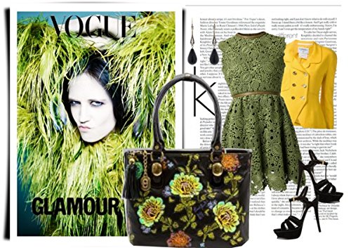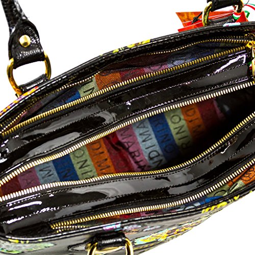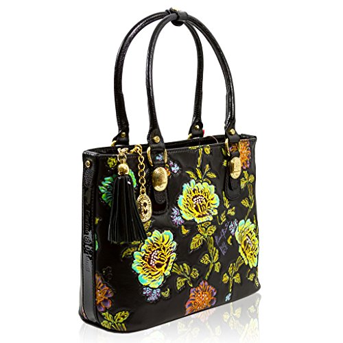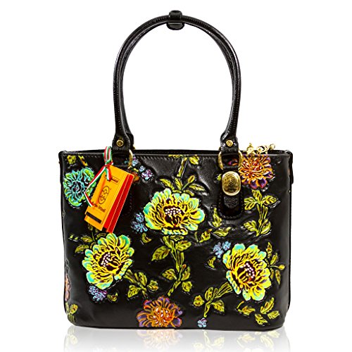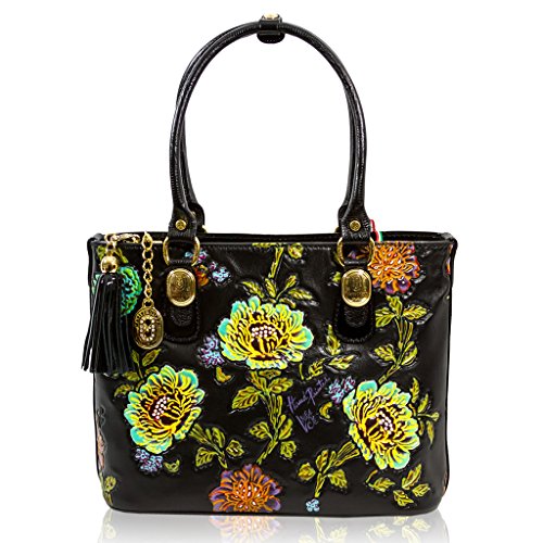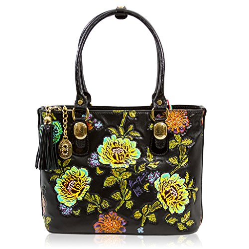Marino Orlandi Italian Designer Handpainted Flowers Black Leather Large Tote Bag