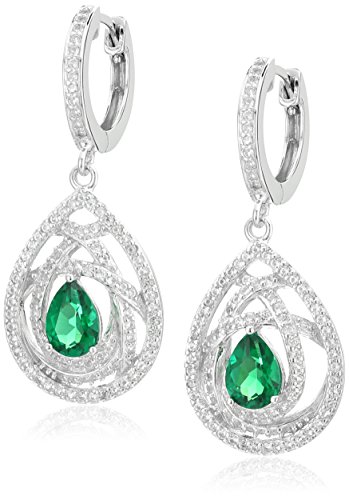 -. Title : Rhodium Plated Sterling Silver Pearl Shaped 7x5mm and Created White Sapphire Teardrop Hoop Earrings
