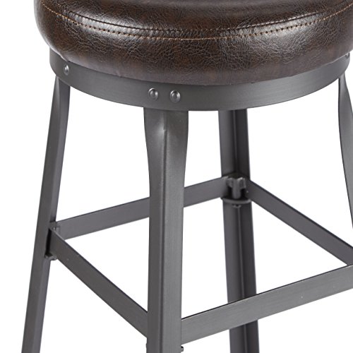 -. Feature : Dimensions: 15.25W x 15.25D x 32H in. / Seat height: 32 in. / Seat width: 15.25 in. / Rich faux leather brown seat / Dark raw steel metal frame