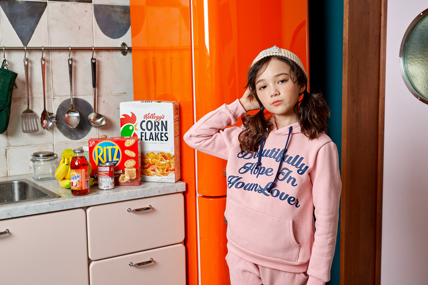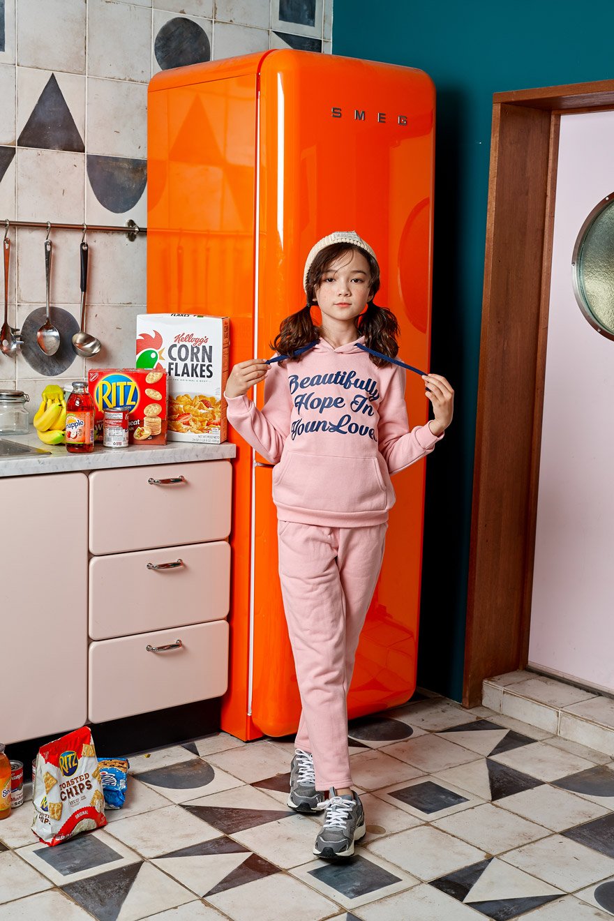 피팅한 여아 모델은140cm에 31kg으로 다소 마른 체격이며,