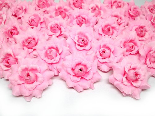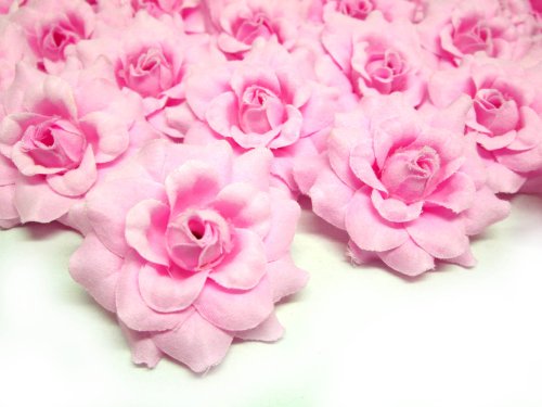 (100) Silk Pink Roses Flower Head - 1.75" - Artificial Flowers Heads Fabric Floral Supplies Wholesale Lot for Wedding Flowers Accessories Make Bridal Hair Clips Headbands Dress