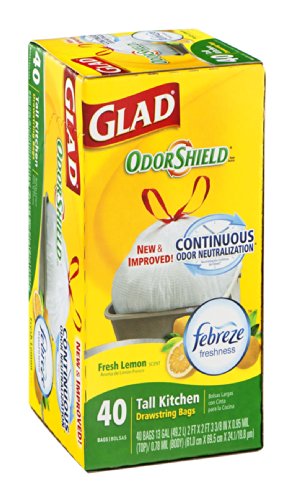 -. Title : Glad 13 Gallon Odor Shield with Febreze Fresh Lemon Scent Drawstring Tall Kitchen Bags 40 ct (Pack of 6)