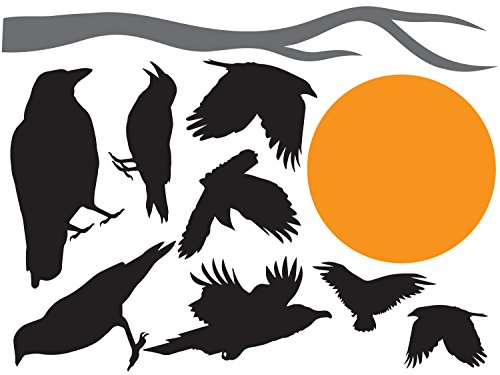 Crows with Moon and Wall Decal Sticker Set by Wallmonkeys Peel and Stick Graphics (48 in W x 32 in H) WM312651