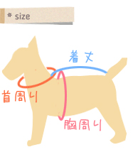 ![]() | サイズ(服の実寸・約) ※多少の誤差が生じる場合があります。 ※ペットのサイズには個体差がありますので、必ずサイズを測ってからお買い求め下さい。ご試着後の返品・交換は承りかねます。 |