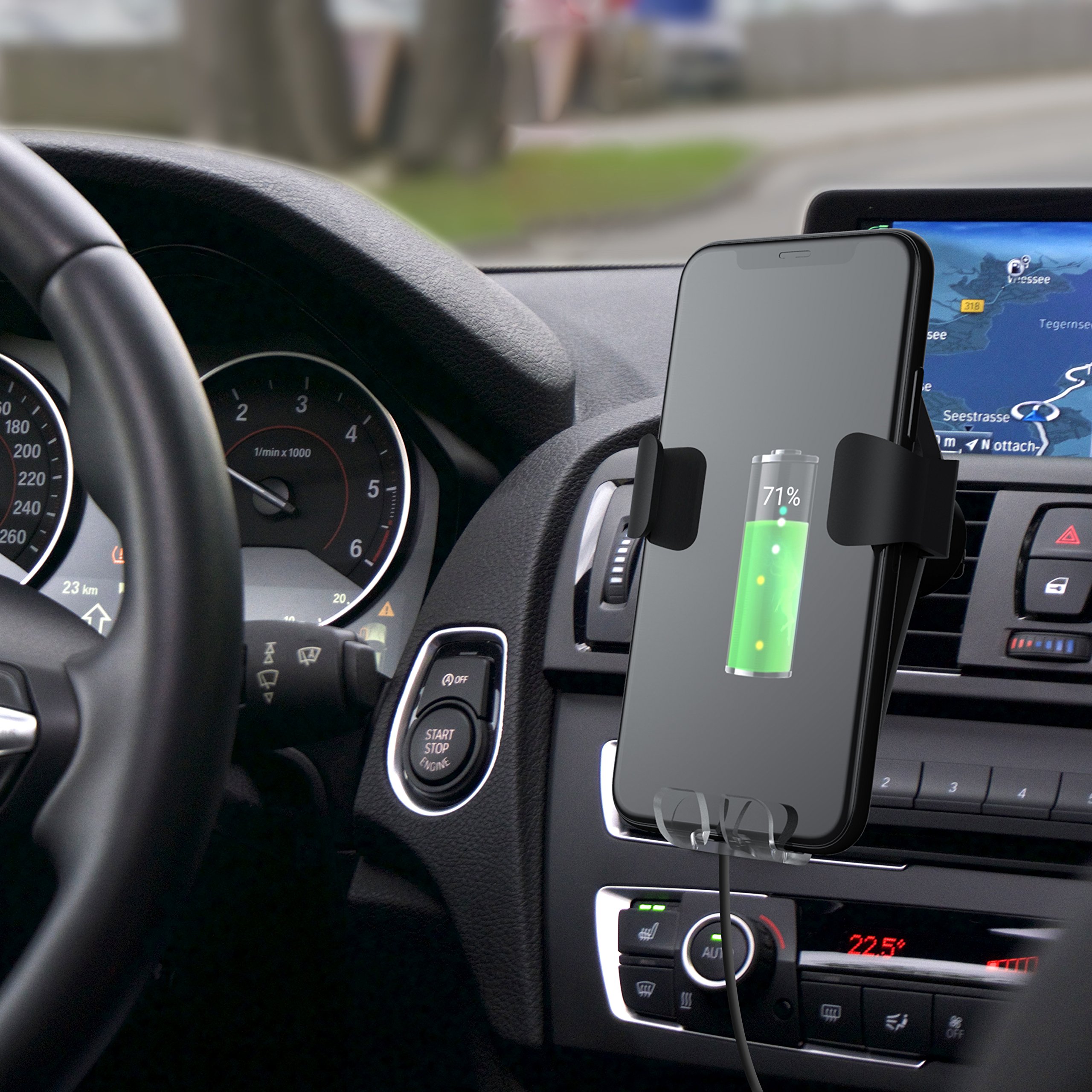 Wireless charger and in-vehicle holder design is convenient.