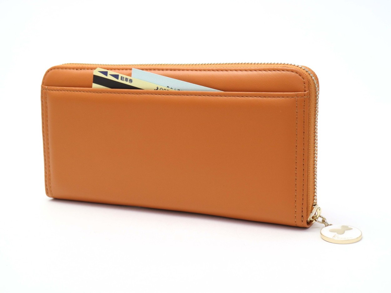 手触りが良く、ソフトで軽いシープスキンを使用し、より女性らしい仕上がりに。カナナのお守りをイメージしたファスナー引手もデザインのポイントです。