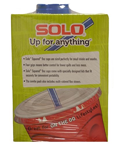 -. Brand : SOLO -. Feature : 15- Red Squared Cups and 15- Lids and 15-Mulit-Colored Flex Straws / Great for parties and on the go lifestyles! / Four grips means better control for fewer spills and less mess / BPA Free -. Label : SOLO -. Manufacturer : SOLO -. ProductGroup : Kitchen -. ProductTypeName : KITCHEN -. Publisher : SOLO -. Studio : SOLO -. Title : Solo 9 Oz Plastic Cup, Lid, & Straw Combo Pack, 15 Cups